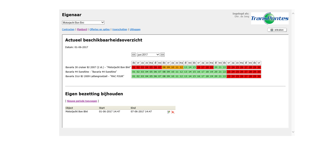 Uw eigenaren kunnen hun bezetting online doorgeven, hun boekingen inzien en hun planbord bekijken in de eigenarenlogin. Iedere eigenaar kan een persoonlijke login krijgen waarin alle gegevens staan m.b.t. hun boten of accommodatie(s). Bovendien kunt u maandelijks met één muisklik de eigenarenfactuur uitdraaien. Hierop staat alles tot op de cent nauwkeurig, waardoor u nauwelijks tijd kwijt bent aan uw eigenarenadministratie. Snel, foutloos, compleet! Maak het uzelf en uw eigenaren gemakkelijk.